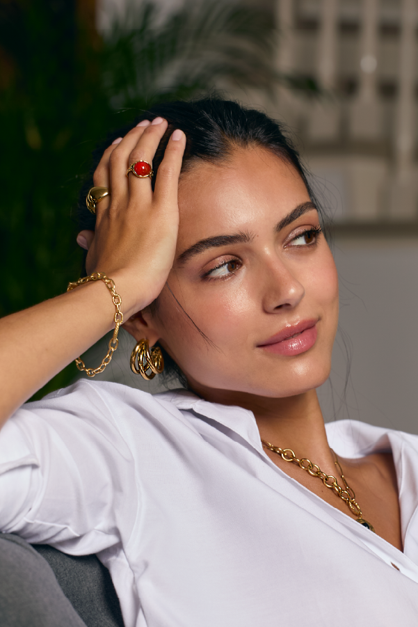 En Miramira, la salud del cliente es una prioridad. Nuestras joyas de acero inoxidable bañado en oro de 14K pasan por rigurosos procesos de producción para asegurar que sean hipoalergénicas y adecuadas para todo tipo de piel. Di adiós a las preocupaciones sobre reacciones alérgicas. El bañado en oro de 14K no solo mejora la apariencia de las joyas, sino también su durabilidad. Cada pieza es una obra de arte meticulosamente elaborada, lista para ser atesorada.